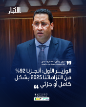 HOME NEWS الوزير الأول: أنجزنا 92% من التزاماتنا في 2025 بشكل كامل أو جزئي By - يناير 22, 2026 0 45 FacebookTwitterPinterestWhatsApp